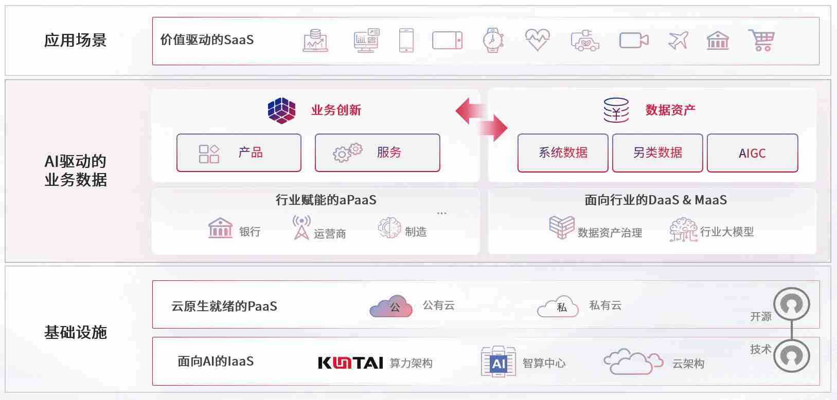 数字时代,,,围绕企业数字化转型的关键要素,,,亚星会员数码开创性的提出数云融合战略和技术体系框架,,,着力在云原生、、、、数字原生、、AI原生和信创产业上架构产品和服务能力,,,,为处在不同数字化转型阶段的快消零售、、汽车、、金融、、、医疗、、、、政企、、、、教育、、运营商等行业客户提供泛在的敏捷IT能力和融合的数据驱动能力,,,,构建跨界融合创新的数字业务场景和新业务模式,,,,助力企业级客户建立面向未来的核心能力和竞争优势,,,全面推动社会的数字化、、、、智能化转型升级。。